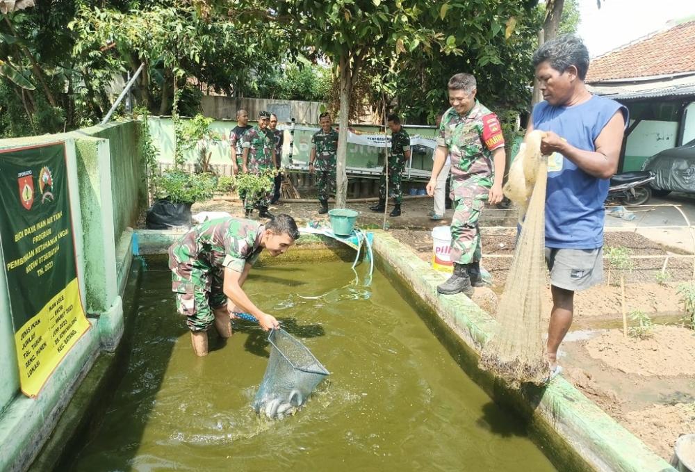 Tebar benih ikan lele di media kolam dengan ukuran 2 meter x 3 meter, di Koramil 11/Warungasem, dilaksanakan pada bulan Maret 2023.