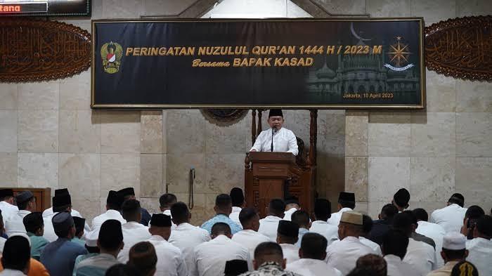 RILISJATENG.COM– Kepala Staf Angkatan Darat (Kasad) Jenderal TNI Dr. Dudung Abdurachman menghadiri peringatan Nuzulul Qur’an 1444 H/2023 M sekaligus memberikan Ceramah Hikmah Nuzulul Quran dan menjadi imam shalat Tarawih.